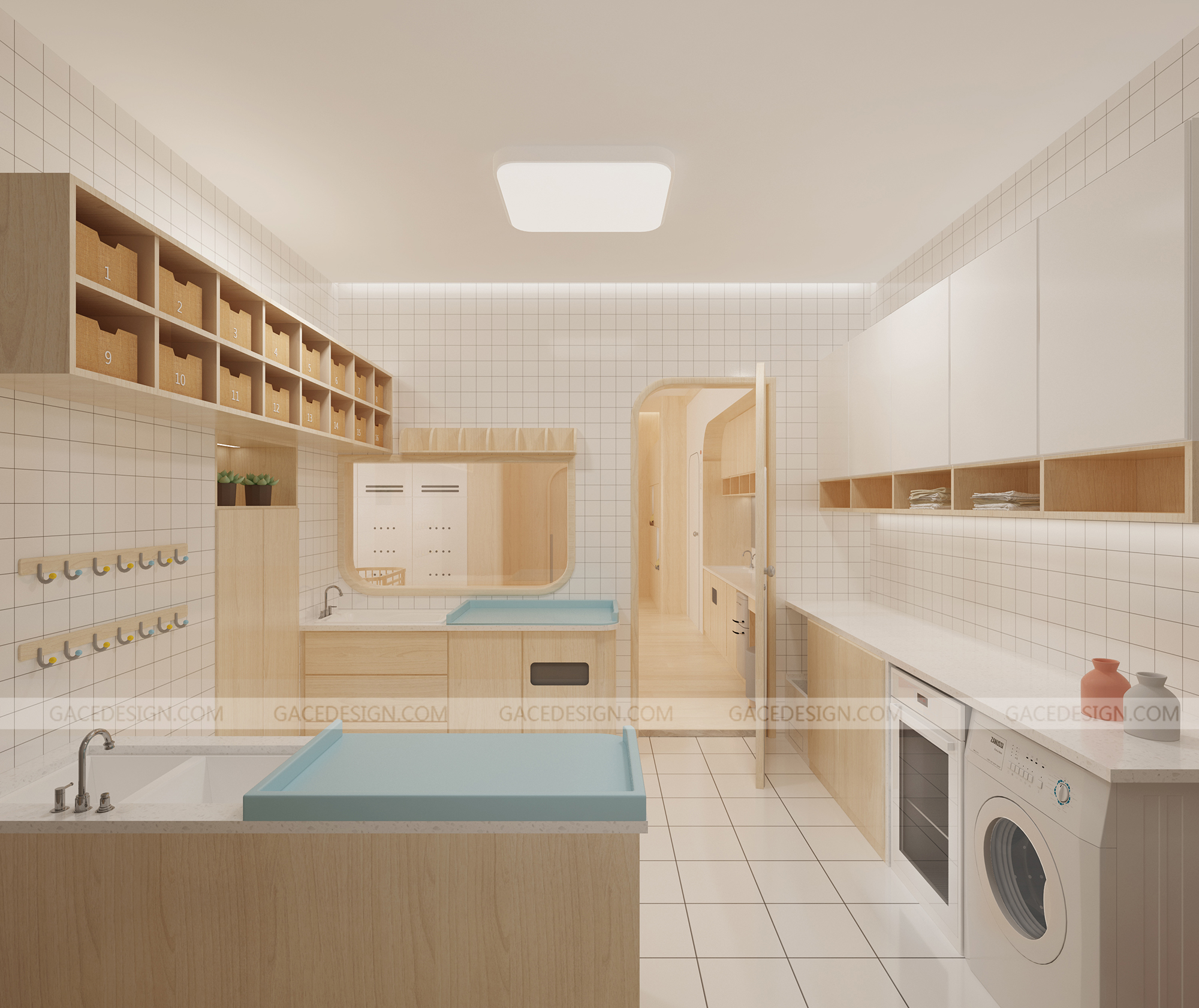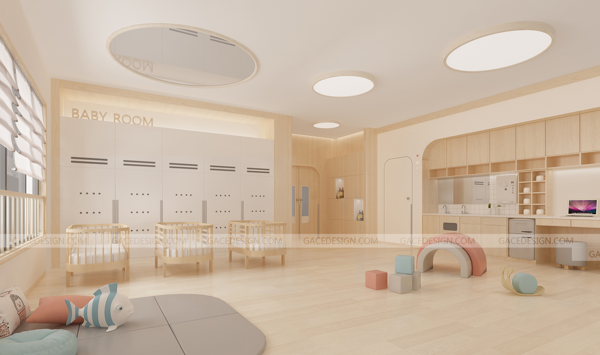 設(shè)計(jì)概括:這是我們幫啟思頓托育園設(shè)計(jì)的旗艦店,面積達(dá)到1000平以上,作為中山市高標(biāo)準(zhǔn)的示范性托育園,我們?cè)谠O(shè)計(jì)之前組織設(shè)計(jì)師進(jìn)行跟崗觀察,學(xué)習(xí)守護(hù)型嬰幼兒保育等系列保育書??紤]到保育員在操作層面上的便捷性,我們進(jìn)行了場(chǎng)景模擬,把操作層面所涉及的柜體以及路徑進(jìn)行了系統(tǒng)性整理??紤]到嬰幼兒在保育園的心理狀態(tài)以及發(fā)展心理學(xué)和空間敏感,我們定位這個(gè)項(xiàng)目是孩子的第二個(gè)家。是一家值得爸爸媽媽愿意托付的托育園。