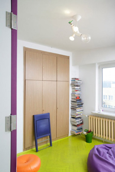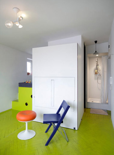 生活在一個窄小的空間里,要遠離沮喪心情,最好的方式就是將它打點的精彩有趣。波蘭建筑師 Jakub Szczesny在設計一處位于波蘭城區(qū)的21.5平米空間時就做到了這一點。