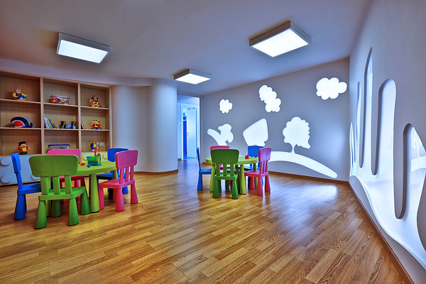 空間中各種柔和亮麗的色彩進(jìn)行搭配,保證了空間的活力同時又不會過于刺眼并且營造了歡快的氛圍。色彩也有助于小孩的識別能力和拼圖能力,給孩子的世界增添多姿多彩的樂趣。