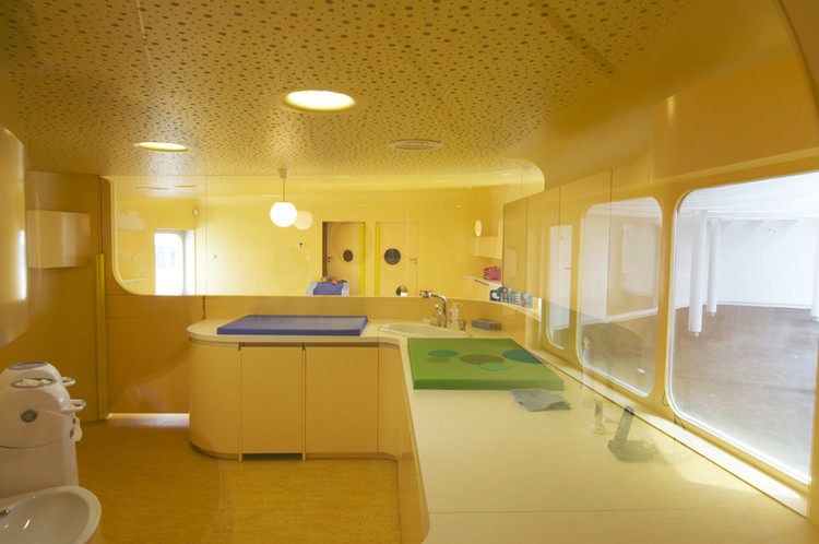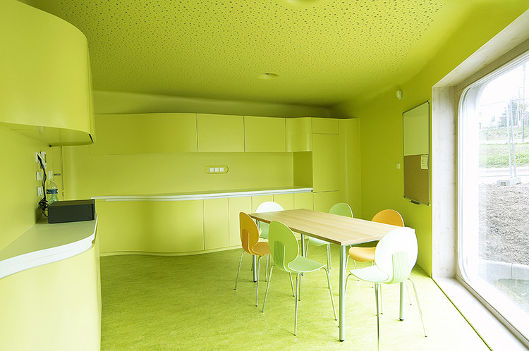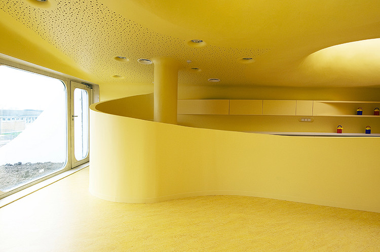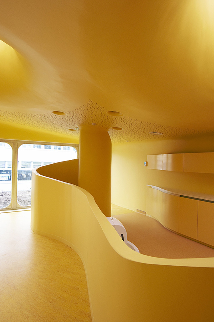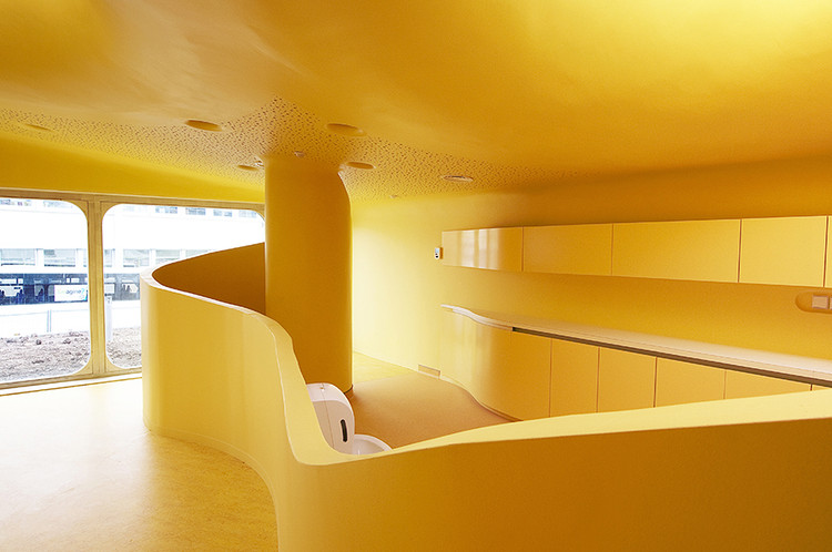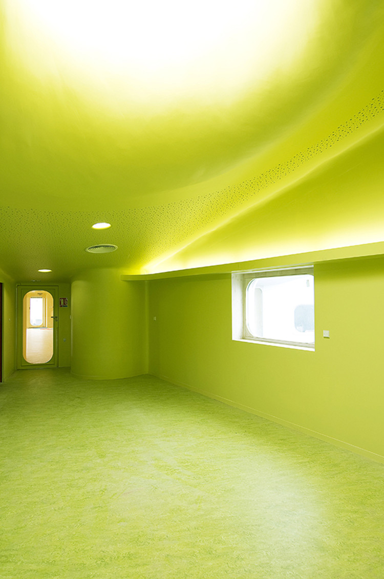 為了保證設(shè)施的安全,所以在內(nèi)部配件的設(shè)計中,消除了所有的直角結(jié)構(gòu),并提供平滑彎曲的邊緣,即使連鋒利的邊緣也被倒圓。這些是該建筑的特點(diǎn)之一,外墻像波浪一樣進(jìn)入了內(nèi)部空間。