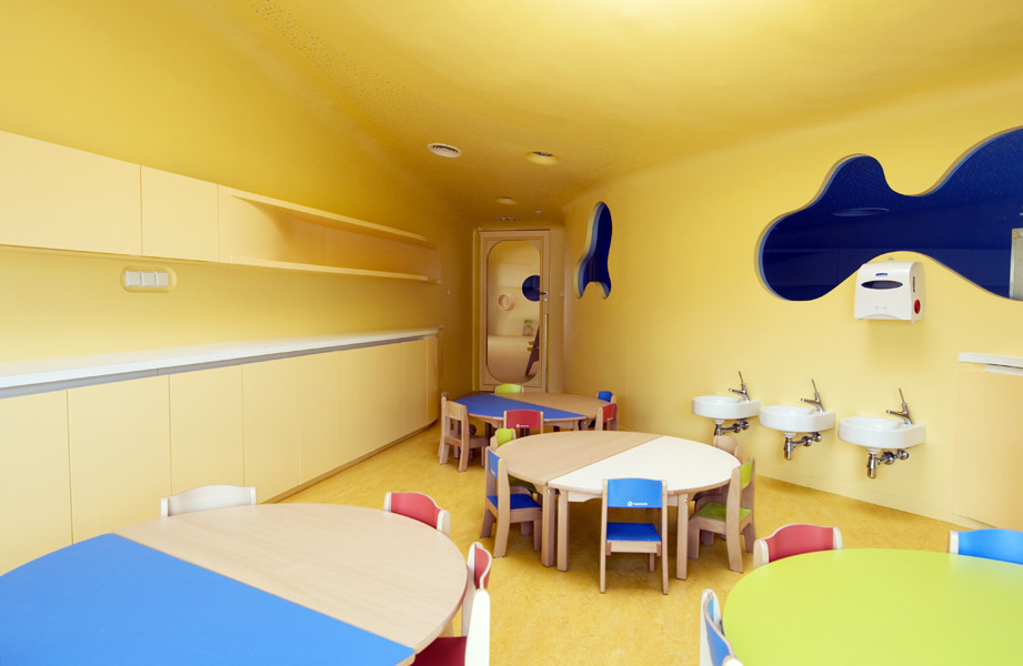 這個日托機(jī)構(gòu)主要面對嬰兒而非兒童,所以要研究家長與工作人員的行為和情感,在建筑設(shè)計中綜合考慮嬰兒被保護(hù)、被關(guān)懷的需要。