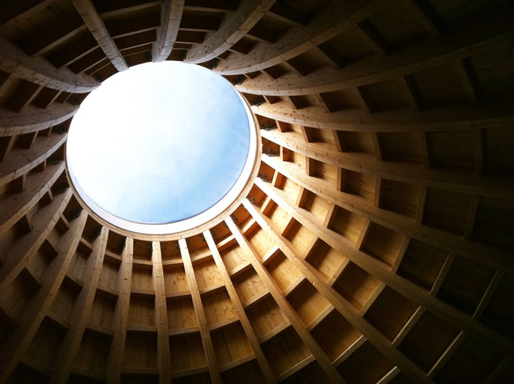 承載內(nèi)部壁是由鋼筋混凝土制成的,并且它們支持的屋頂被彎曲的形狀,大量使用以降低制造成本,膠水層疊木梁用來建造單層防潮膜覆蓋的屋頂。