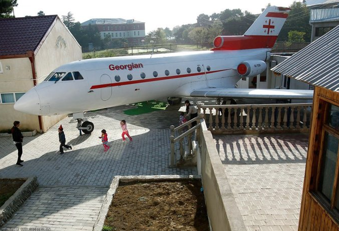 在格魯吉亞有一座幼兒園可以說(shuō)是世界上獨(dú)一無(wú)二的一所幼兒園,因?yàn)檫@個(gè)幼兒園是格魯吉亞魯斯塔維市的加里?查皮茲在格魯吉亞航空購(gòu)買的一架雅克-42型客機(jī)飛機(jī)去改造成的一所幼兒園。盡管這架飛機(jī)老舊了但飛機(jī)仍能工作,經(jīng)過(guò)改造在機(jī)艙內(nèi)安裝了游戲設(shè)計(jì)玩具和教育器材,把有1500個(gè)按鈕的駕駛艙儀器保留作為游戲的道具。