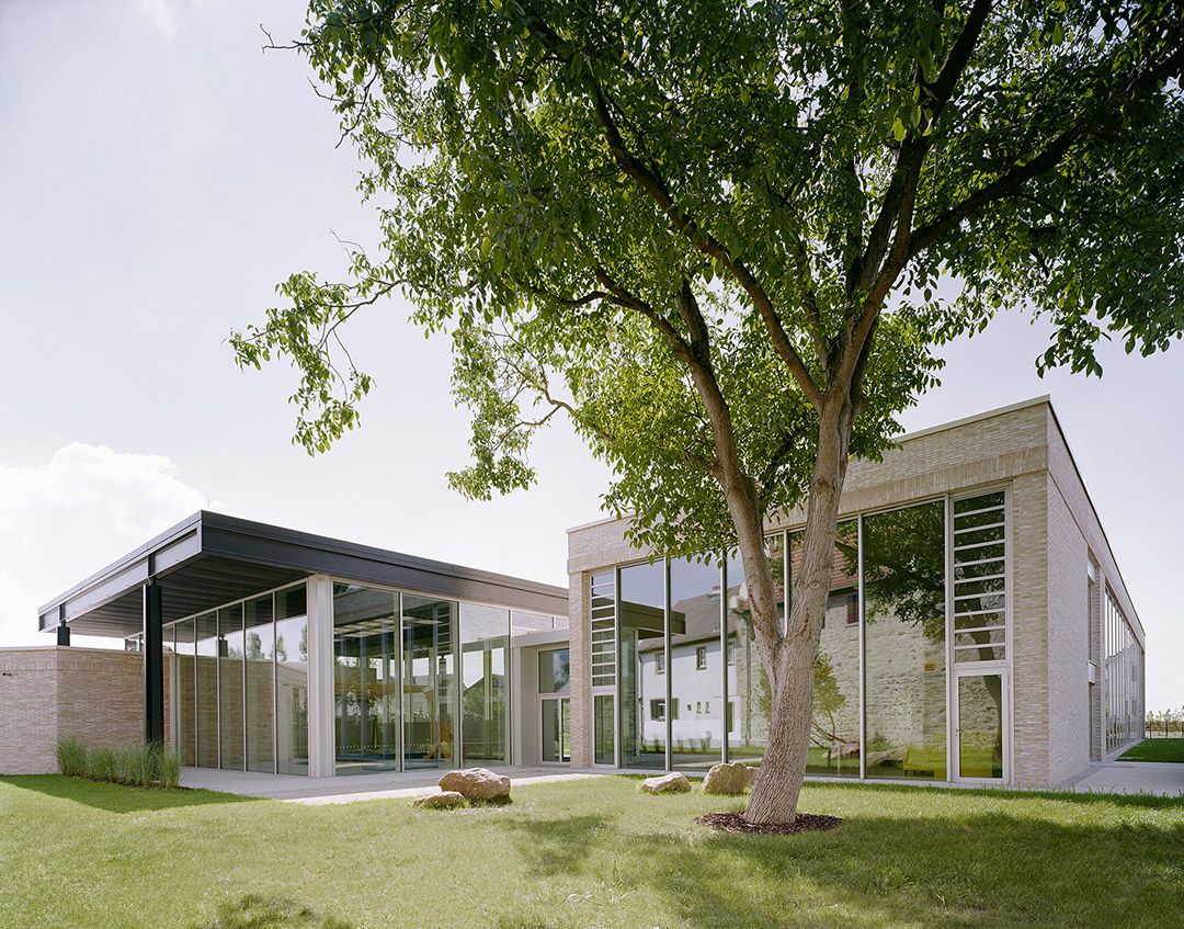 在古老的城墻邊上建有一座幼兒園,這所以混凝土和明黃色搭配的幼兒園高雅而又不失活力,雙翼構(gòu)造環(huán)抱住室外庭院,而大面積的落地玻璃窗讓室外美景滿滿映入眼簾,建筑師在做建筑的時候也采取了對歷史的尊重,外觀選擇了磚飾面。