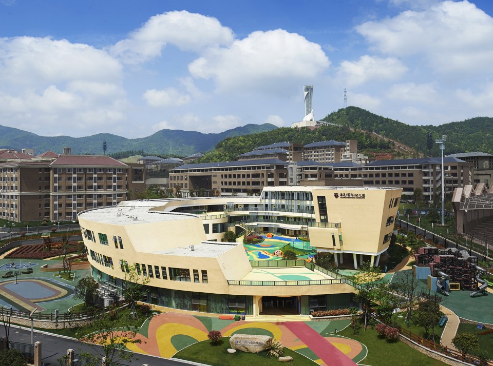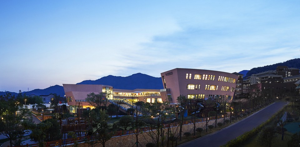 在浙江一所名為海亮國際的幼兒園是一座大型的寄宿制度的幼兒園,其中面積達(dá)到10000平方米,園內(nèi)共分為25個班,能容納五百多名兒童,對孩子們活動安全方面考慮,幼兒園在園內(nèi)選擇了一個先對平緩的一塊平地,周邊則是分別為初中、小學(xué)、體育場館、接待中心等,較為復(fù)雜和擁擠。在一個這樣復(fù)雜的環(huán)境下如何去給孩子們?nèi)?chuàng)造一個具有安全感,符合孩子們心理的歡樂場所,這成為了設(shè)計師的主要挑戰(zhàn)。