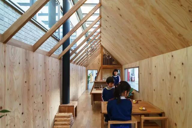 “Ouchi”通過各種角色扮演活動來培養(yǎng)孩子的創(chuàng)造力和想象力。此外,在建造時還帶孩子們到場地上參觀,讓他們親身接觸和感受木匠的工作。由此設(shè)計者還挑戰(zhàn)了傳統(tǒng)的方法,讓孩子們近距離接觸成人的工作,創(chuàng)造機會來增加孩子們好奇與探索的可能性。(幼兒園室內(nèi)設(shè)計)