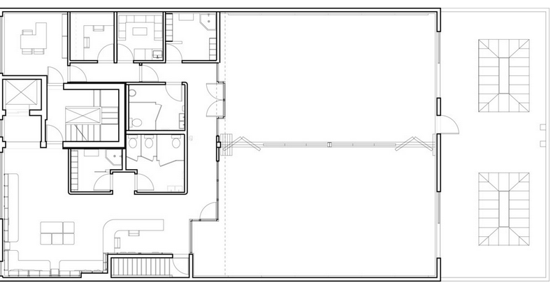 舞蹈教室設(shè)有彈簧地板和明亮的天窗,為舞者創(chuàng)造了絕佳的環(huán)境。兩間教室之間采用可變隔墻,在演出時(shí)可以將隔斷完全打開,形成一個(gè)帶遮光簾的巨大舞臺(tái)。