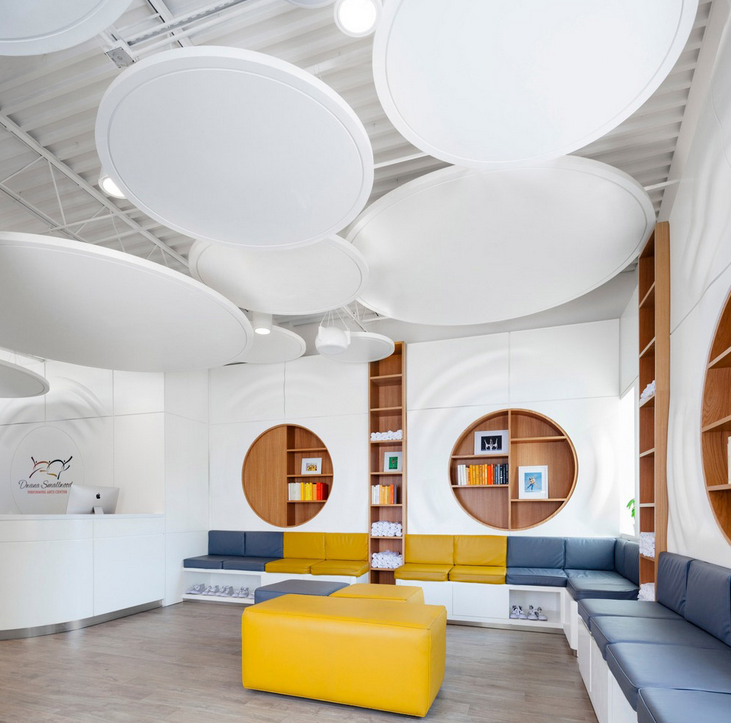 ▼明亮通透的舞蹈教室兩間舞蹈教室打通形式一個(gè)巨大舞臺(tái)嵌入式儲(chǔ)物柜,鮮艷的顏色給人以充滿活力的感覺