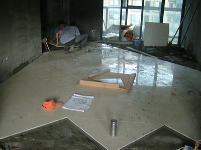 泥工在進(jìn)場施工前兩天根據(jù)設(shè)計(jì)圖紙將所需材料進(jìn)行初步估計(jì),如砂子、紅磚、水泥的數(shù)量以及墻面、地面磚的面積。墻面、地面面積的計(jì)算方法是:墻面面積=(長+寬)×2×所貼瓷磚的高度(門窗折半);地面面積=長×寬+10%損耗。并注明廚房、主衛(wèi)、次衛(wèi)、陽臺墻面、地面的面積分別是多少,客、餐廳地面面積是多少,地漏有多少個(gè)等,開出具體的材料單交至項(xiàng)目經(jīng)理,兩天內(nèi)公司將材料配送到工地。