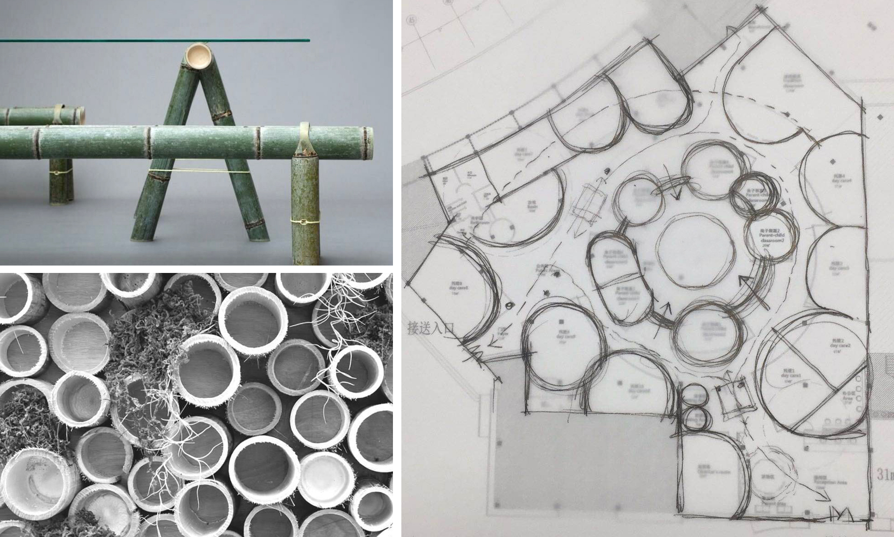 ▲由竹子橫截面為靈感,初步構(gòu)想項目設(shè)計思路