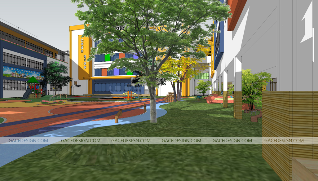 為此,建筑風(fēng)格要均勻協(xié)調(diào),活潑多樣,色彩要明快清新,保證每個(gè)幼兒有20平方米的樹(shù)木或10平方米草地的占有率;不能忽視建筑的通風(fēng)、音響效果、照明。
